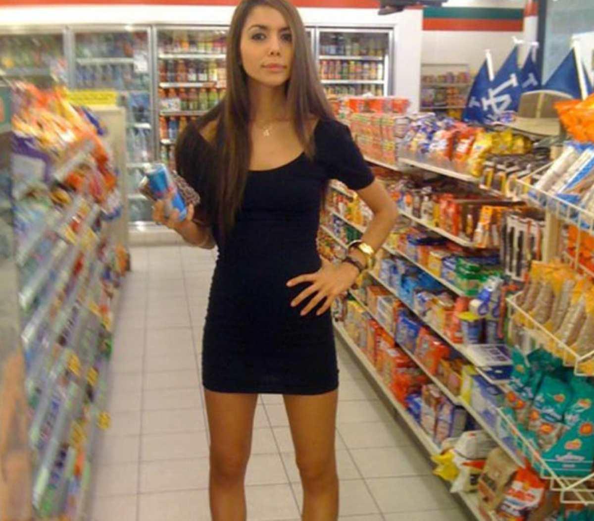 If we were to interpret this woman’s response, it would be: “I arrived today in my lovely black dress to be photographed, and I feel beautiful. Deal with it.” So here we are. Her outfit is stunning. The question we have, once more, is when did supermarket aisles become the latest red carpet? And how did we miss the memo?